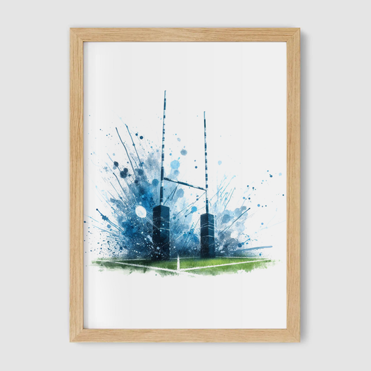 Blue Rugby Goalpost Print - Rugby Collection