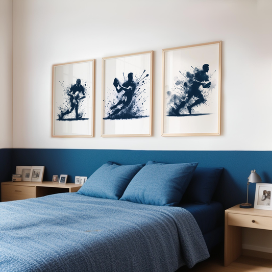 Blue Rugby Players Print Set - Rugby Collection Set of 3