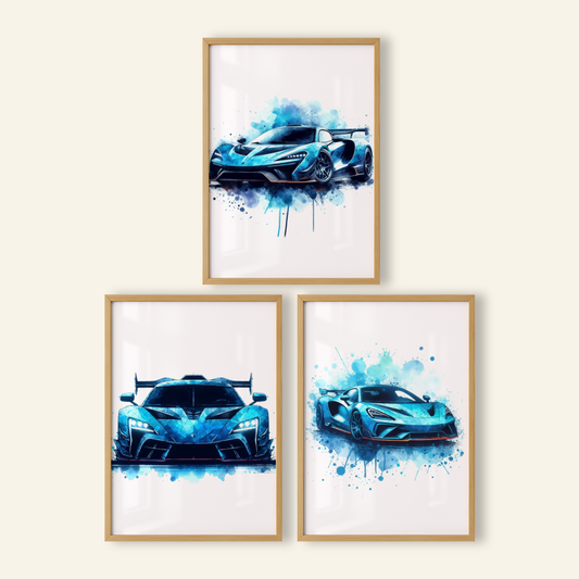Blue Supercar Print Set - Vehicle Collection Set of 3