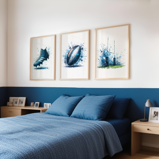 Blue Watercolour Rugby Print Set - Rugby Collection Set of 3