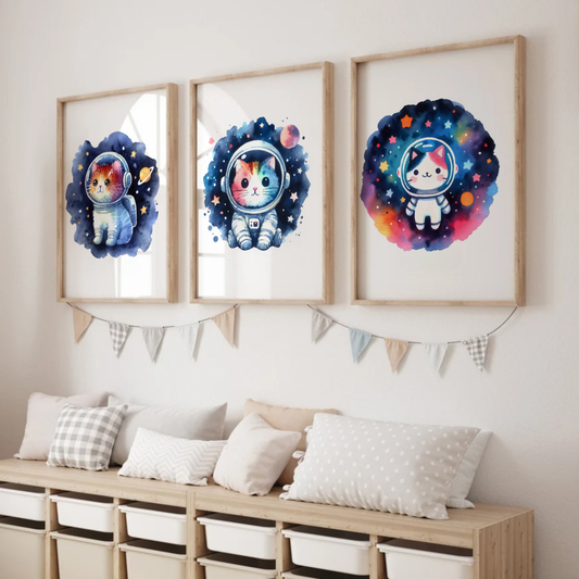 Cat Spaceman Print Set - Nursery Space Collection Set of 3