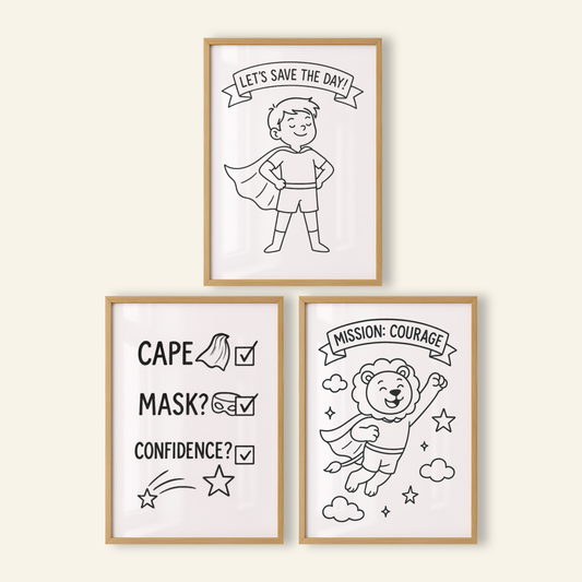 Cape, Mask, Confidence Print Set - Superhero Collection Set of 3