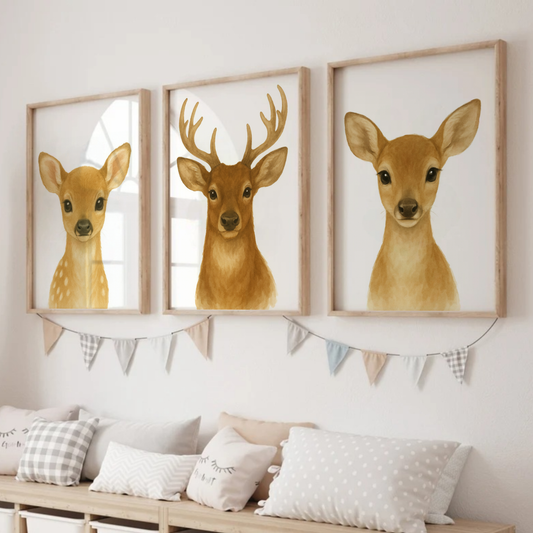 Baby Deer, Stag & Female Deer - Woodland Nursery Print Set of 3