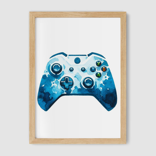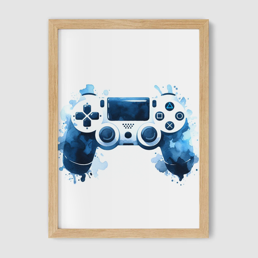 Blue & White Controller Art Print - Gaming Collection