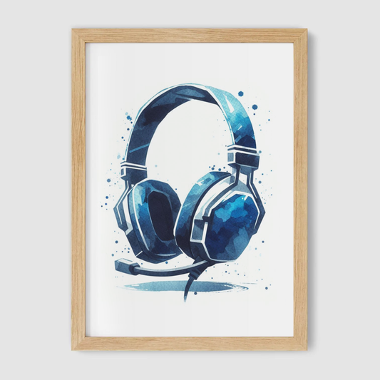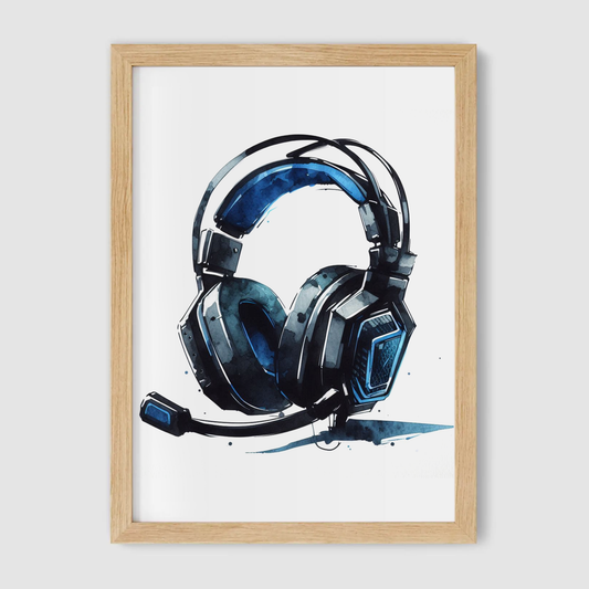 Blue & Black Headset Art Print - Gaming Collection