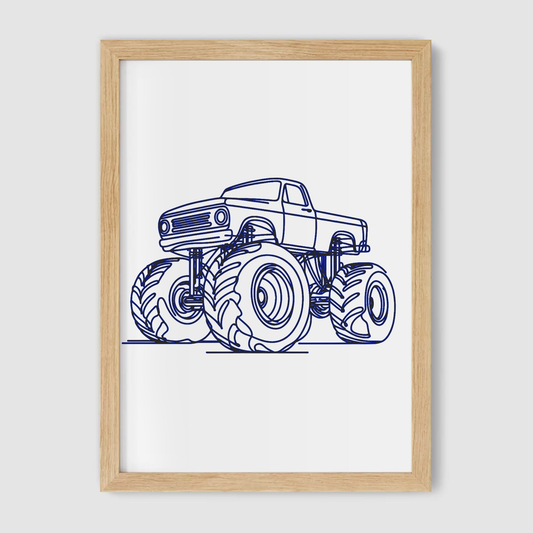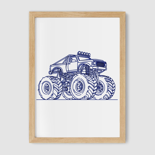 Blue Monster Truck Line Art Print - Vehicles Collection