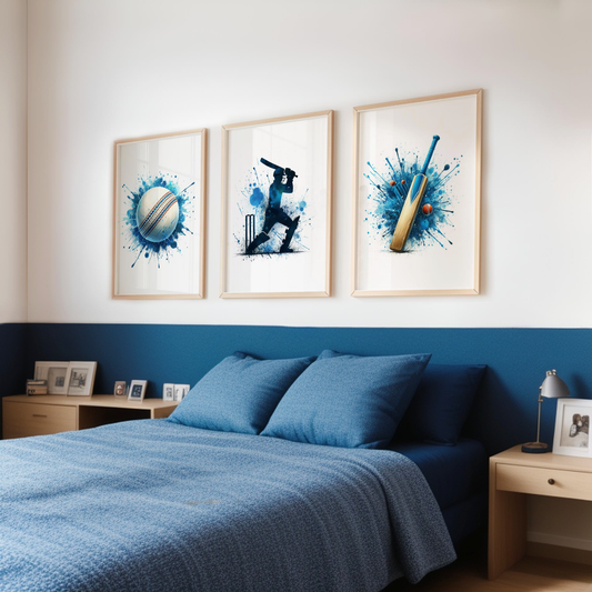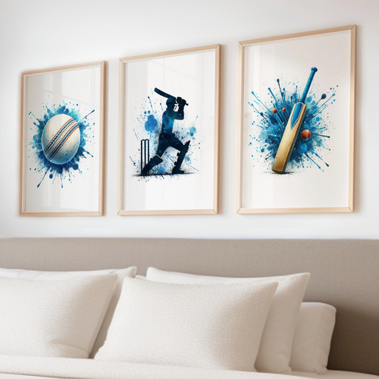 Blue Cricket Batsmen Print Set - Cricket Collection Set of 3