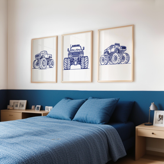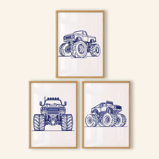 Blue Monster Truck Print Set - Vehicle Collection Set of 3