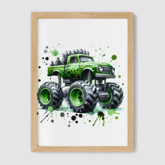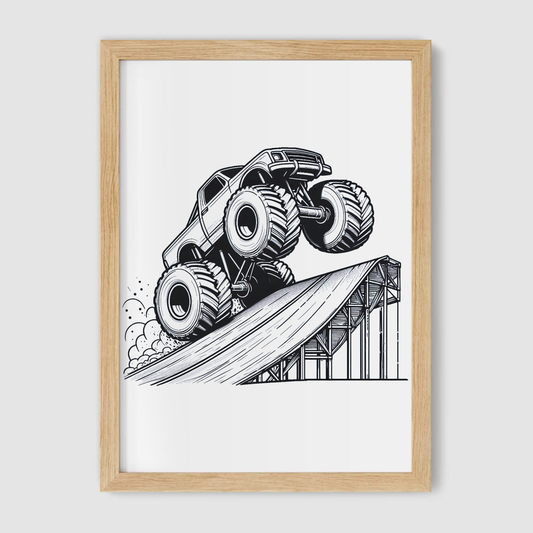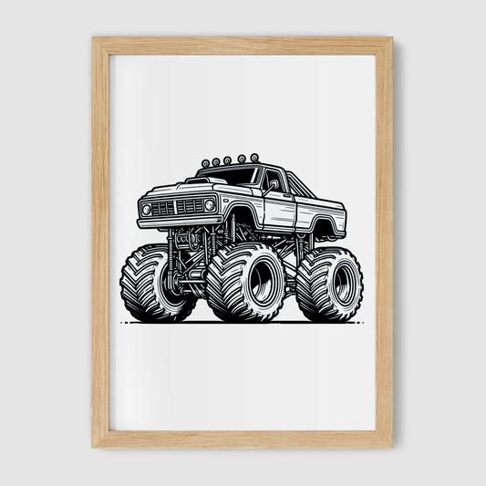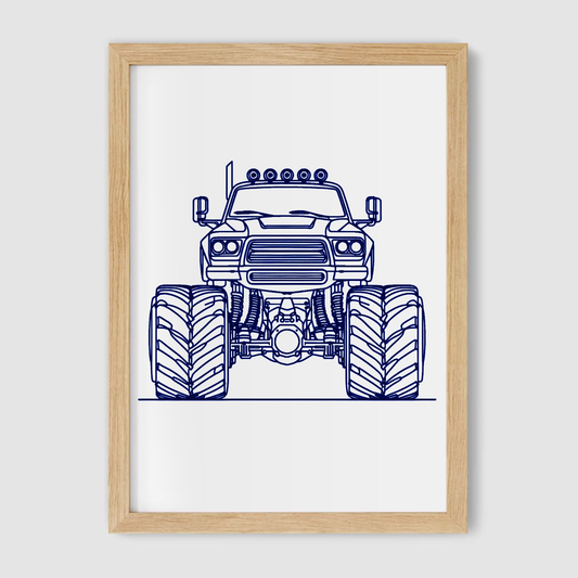 Blue Monster Truck Line Art Print - Vehicles Collection