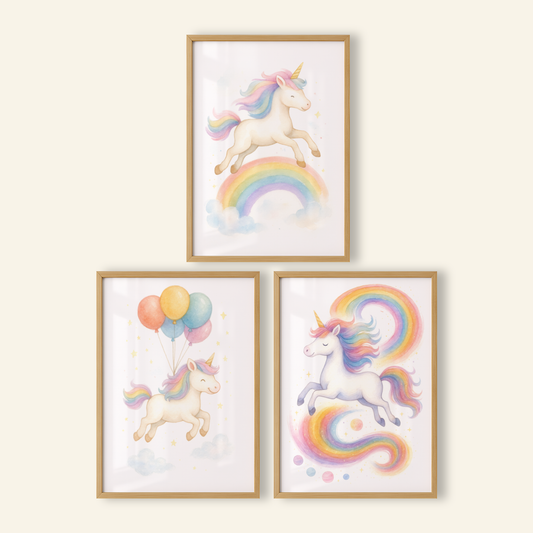 Rainbow Unicorn Dreams Print Set - Unicorns Collection Set of 3