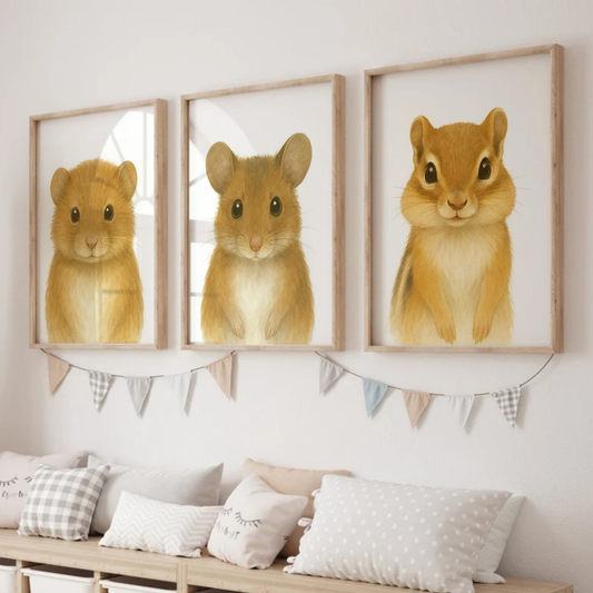 Vole, Mouse & Chipmunk - Woodland Nursery Print Set of 3