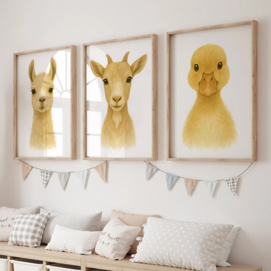Llama, Goat & Duckling Print Set - Nursery Farmyard Animal Collection Set of 3