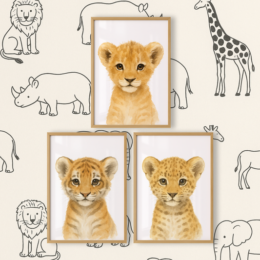 Lion, Tiger & Leopard - Safari Nursery Print Set of 3