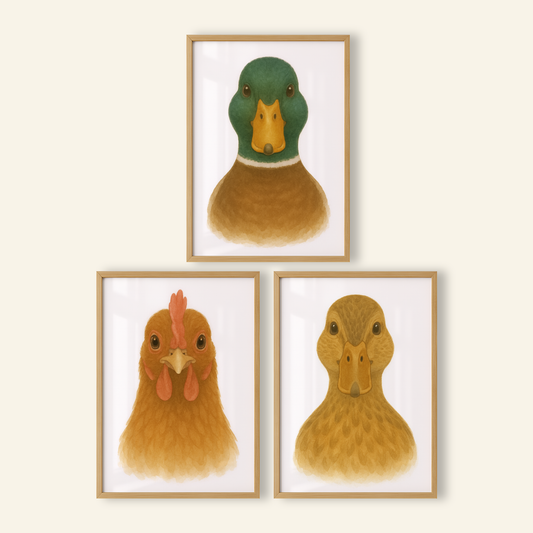 Farm Bird Print Set - Nursery Farmyard Animal Collection Set of 3
