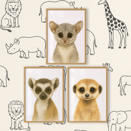 Bush Baby, Lemur & Meerkat - Safari Nursery Print Set of 3